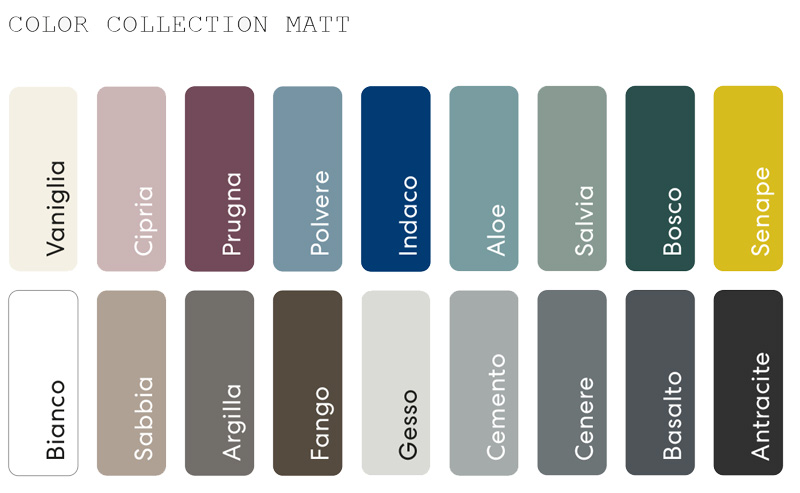 Das italienische Sanitär-Label verfügt über eine breite Palette von Produkten: von Badmöbeln über Waschbecken, WCs, Bidets zu Badewannen und Sitzbadewannen, viele davon sind in zahlreichen, trendigen und modischen Farben verfügbar. Neben glänzenden Oberflächen finden sich zudem matte Oberflächen.